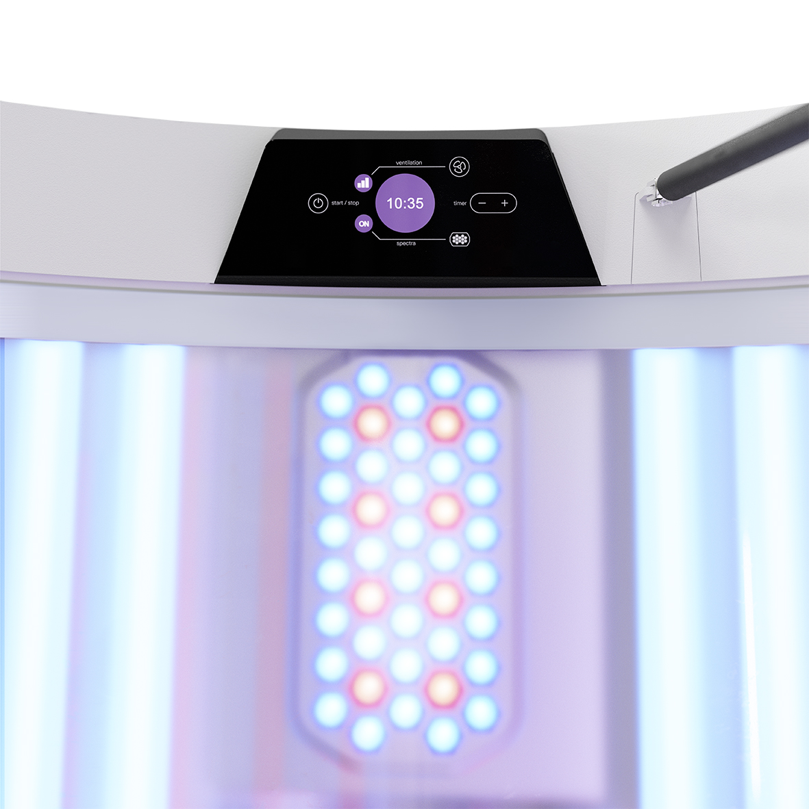 Erlebe modernste Bräunungstechnologie in Premium-Qualität: Das LightSpa Hybrid kombiniert natürliches UV-Licht mit intensiv pflegendem rotem Beauty Light – für ein sichtbar frisches Hautbild und eine gleichmäßig schöne Bräune. Inspiriert von den innovativen Hybrid-Technologien professioneller Ergoline-Solarien, holst du dir mit dem LightSpa ein echtes Wellness-Erlebnis direkt nach Hause.