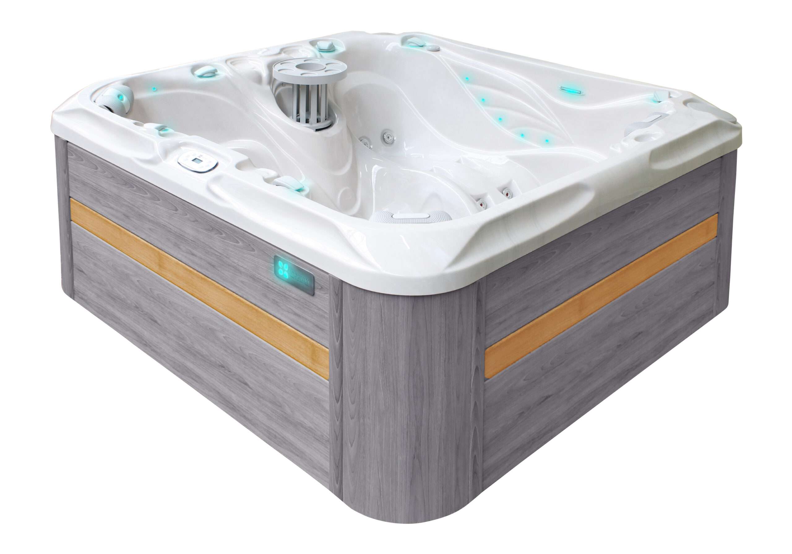 Der Whirlpool Pleasure überzeugt durch StarBrite LED-Unterwasserbeleuchtung, Aromatherapie und ein Bluetooth-Audiosystem mit integrierten Lautsprechern – ideal für stimmungsvolle Wellness-Abende im Garten.