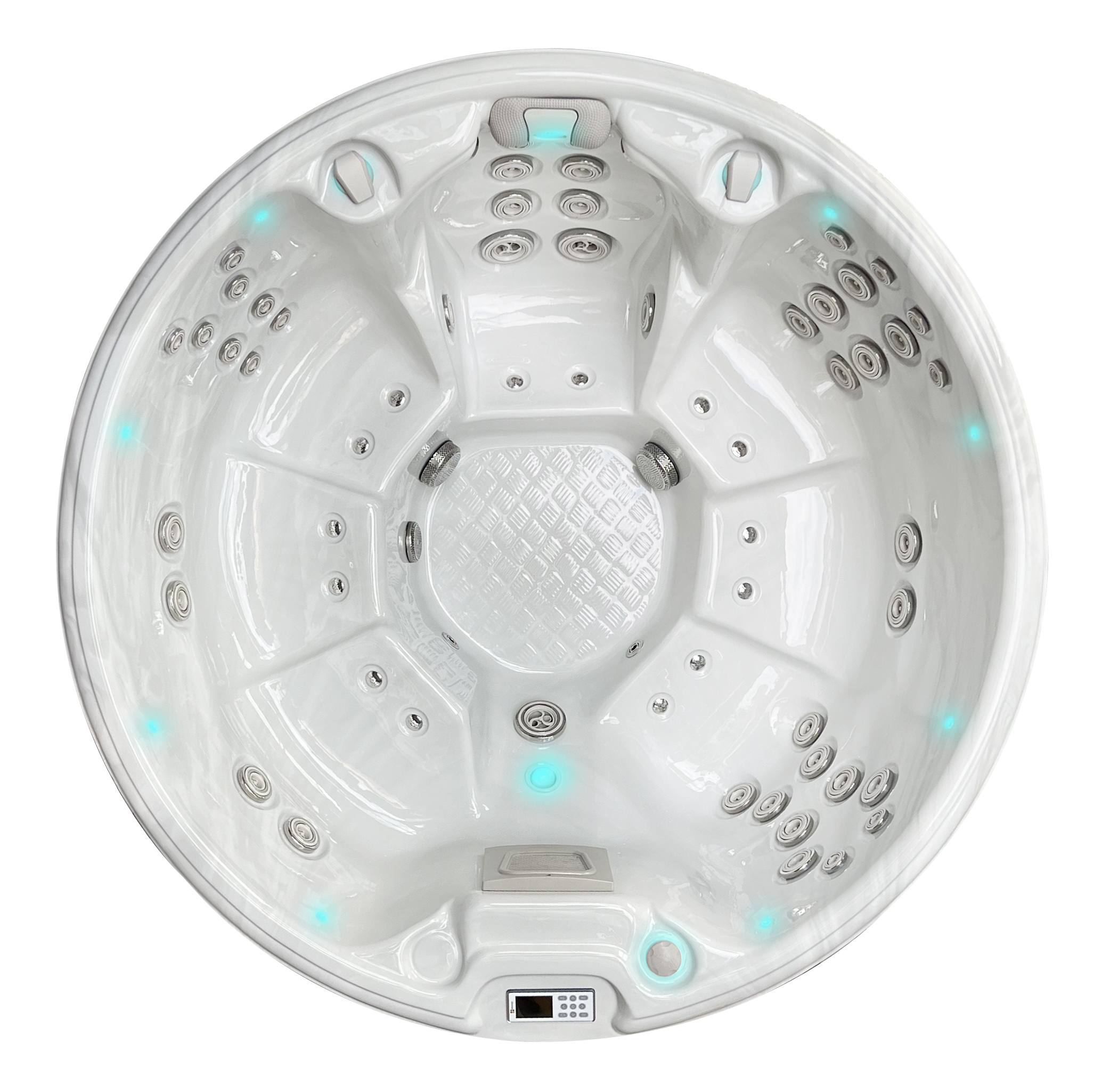 Der Whirlpool Recharge kombiniert elegantes Design mit intensiver Hydrotherapie – ideal für alle, die ihren Außenbereich mit einem hochwertigen, platzsparenden Rund-Whirlpool aufwerten möchten. Mit einem Durchmesser von 200 cm bietet dieses Modell Platz für bis zu 7 Personen und verwöhnt dank modernster Massage- und Komfortfunktionen jeden einzelnen Sitzplatz.