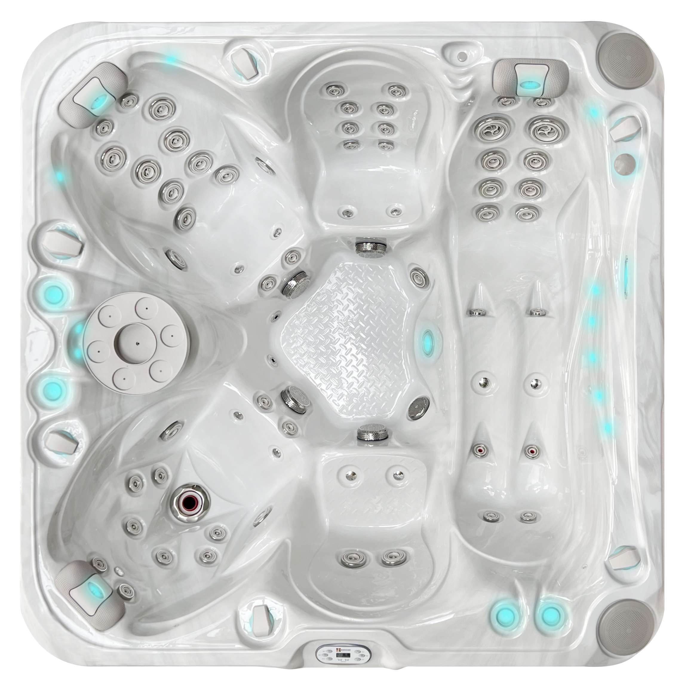 Die Solace Spa aus der Passion Spas Signature Collection bietet großzügigen Platz und außergewöhnlichen Komfort für bis zu fünf Personen. Mit einem extra großen Mittelsitz, zwei breiten Bankplätzen, zwei ergonomischen Schalensitzen und einer komfortablen Liege ist dieser Whirlpool ideal für Familie, Freunde oder entspannte Wellness-Momente.